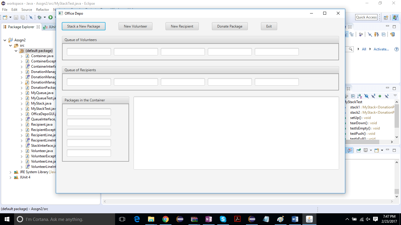 2. Create a generic stack class called MyStack to place the DonationPackage on a Container. MyStack will implement the Stack Interface given you.