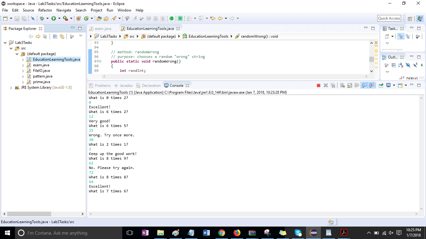 Exam.java Pattern.java FileIO.java PrimeChecker.java MultiplicationLearner.java