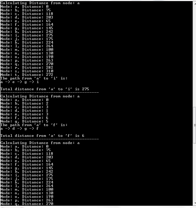 A shortest path between nodes i and j in a graph is a path from i to j such that the sum of the weights of the edges along the path is less than or equal to the sum of the weights along the edges of any other path from i to j. In this programming assignment, you will find the shortest path from A to I by implementing Dijkstra’s algorithm.