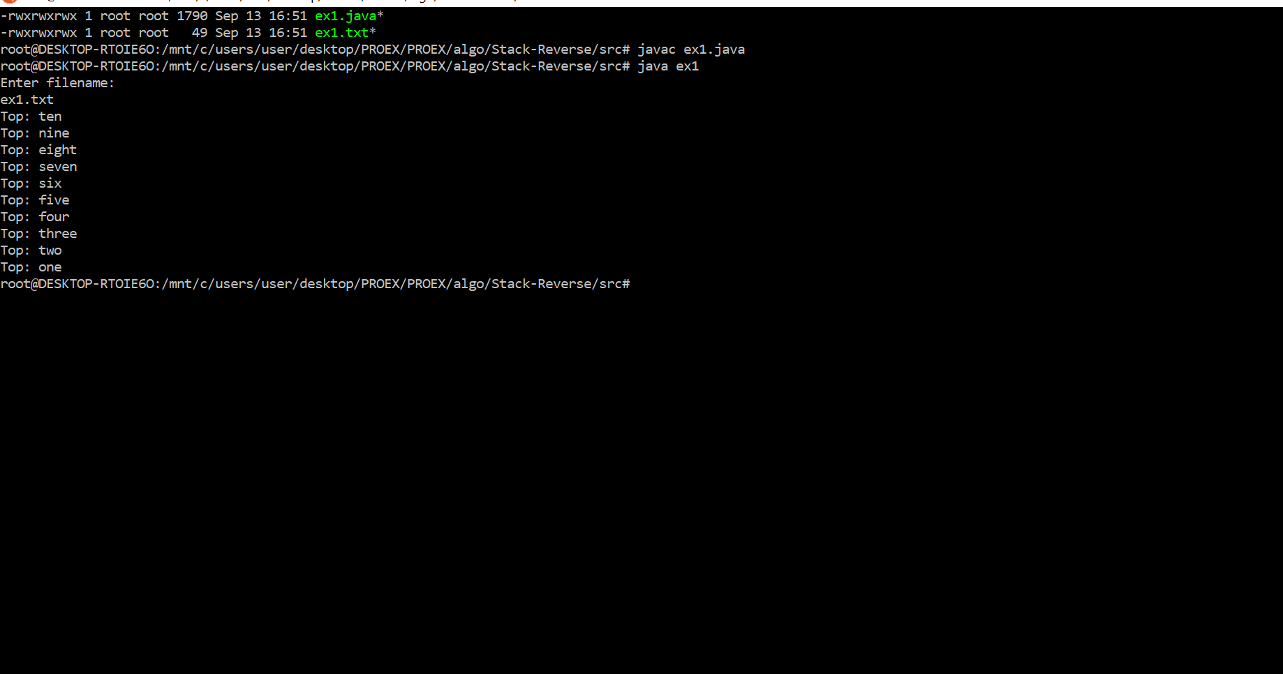 For this exercise you are to write a program (in C, C++ or java, preferably) that reads a text file containing a number of words and displays the words on the screen in reverse order using a stack. A pseudo‐code outline for the program is given below: