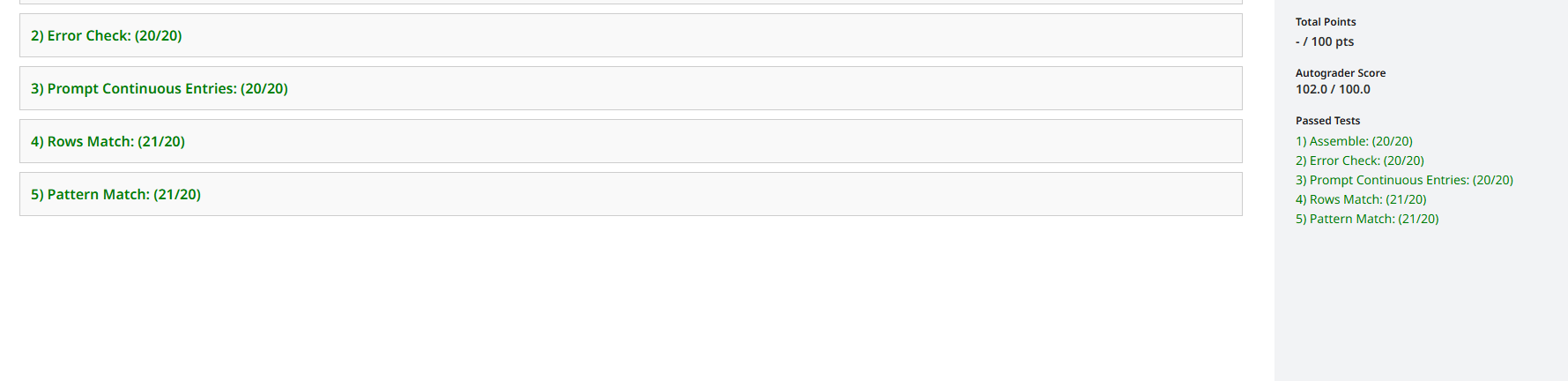 20 pt number of rows match user input (i.e., if n=6, the pattern would have 6 row