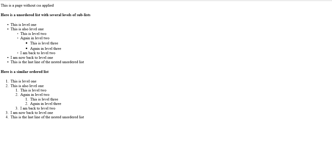 - Re-create the sample Web pages listed below with nested ordered lists and nested unordered lists. (This Web page will be reused for each part below). (As shown in Figure 1.)