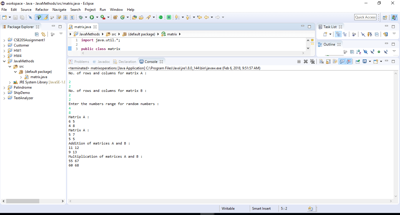 d) A Java method MultiplyMatrix. This method shall multiply two matrices A and B and return the resulted matrix. The method parameters are: array A and array B